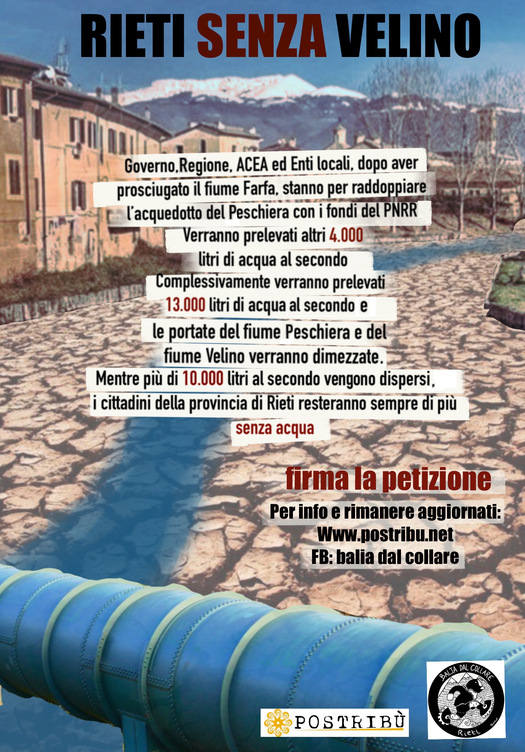 Anche senza esprimere parere negativo sul progetto di raddoppio dell’acquedotto del Peschiera, sarà sufficiente rivendicare l’uso civico sulle acque, per i diversi scopi di cui storicamente beneficiano le comunità reatine, per imporre che non vi siano ulteriori prelievi d’acqua oltre gli attuali circa 8.800 litri al secondo, soprattutto in assenza della Valutazione di Impatto Ambientale per le derivazioni idriche che, seppur obbligatoria, non è stata ancora avviata.