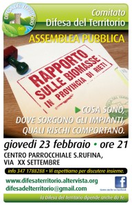 Giovedì 23 Febbraio 2012 alle ore 21:00 presso la sala parrocchiale di Santa Rufina, il Comitato di Cittaducale-Santa Rufina (Difesa del Territorio), ha indetto una Assemblea Pubblica per discutere insieme degli impianti a biomassa che interessano il nostro territorio.